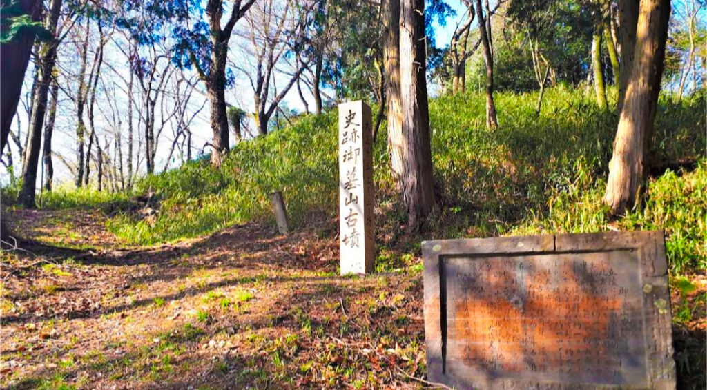 敢國神社の周辺には、阿閉氏の強大な権力を証明する巨大な考古学的遺物が存在します。それが、神社の北約1キロメートルに位置する「御墓山古墳(おはかやまこふん)」です。