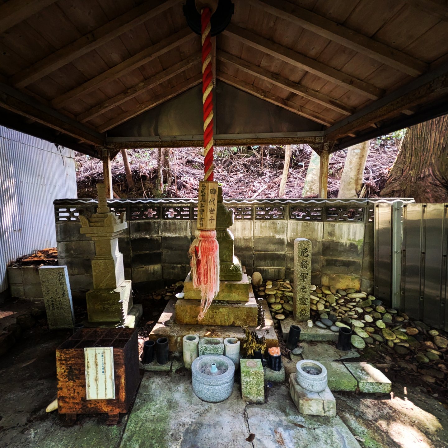 供養塔は深い森の中にあり、車道からは直接アクセスできない小道(古道)沿いに位置しています。