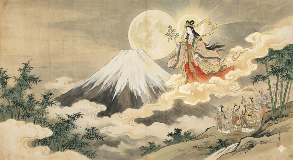 中世から江戸時代初期にかけて、神仏習合の思想下では、「富士山の神=浅間大菩薩=かぐや姫(大日如来の垂迹)」という図式が成立していました。