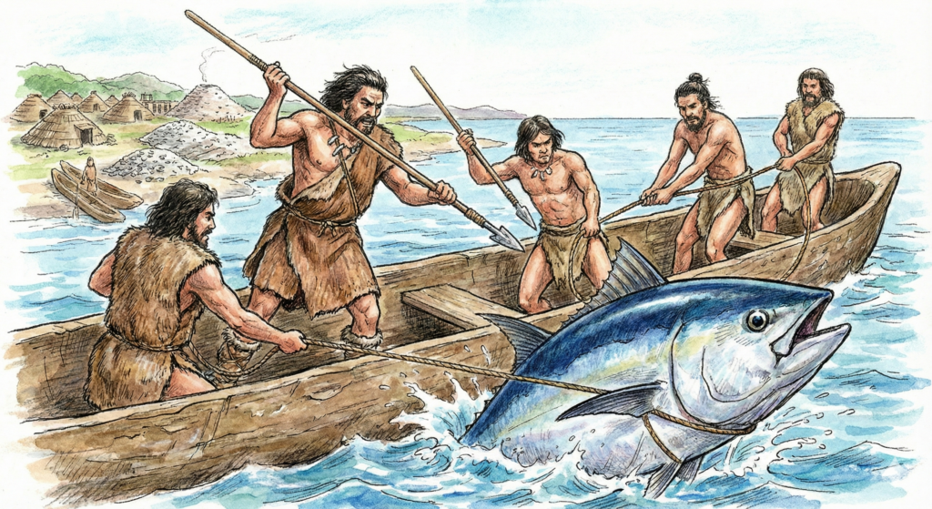 これらは湾内では獲れません。縄文人たちは堅牢な丸木舟を操り、高度な釣針や銛(もり)を携えて、勇猛果敢に沖合へ進出していたのです。冬にはハクチョウなどの渡り鳥も狩猟しており、一年を通じて陸・海・空の資源をフル活用していました。