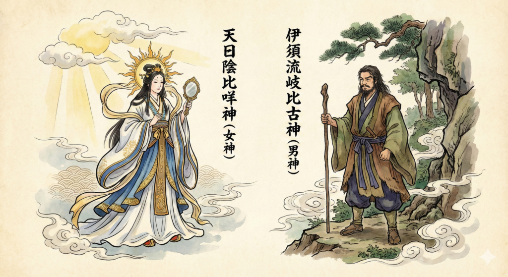 - 伝承: 祭神は「天日陰比咩神(女神)」と「伊須流岐比古神(男神)」の夫婦神(または姉弟)。