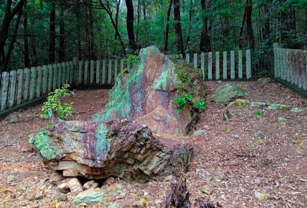 実は明治時代以前、伊波乃西神社の社殿は、現在の山麓ではなく、この巨石のすぐ目の前(あるいは岩そのもの)にありました。岩を御神体として祀る、極めてプリミティブ(原初的)な信仰形態だったのです。