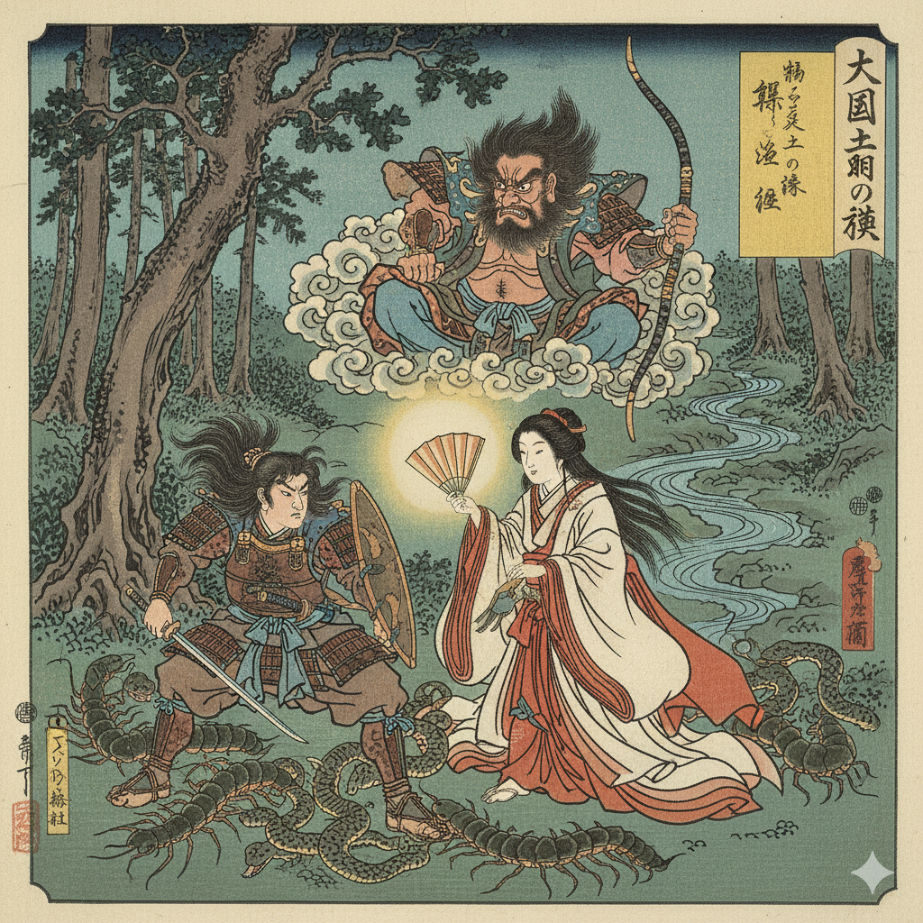 大神の物語は、試練の連続から始まります。兄弟神たちに命を狙われながらも、皮を剥がれて苦しむ兎を救う「因幡の白兎」の物語は、彼が持つ深い慈悲の心を象徴しています 。
