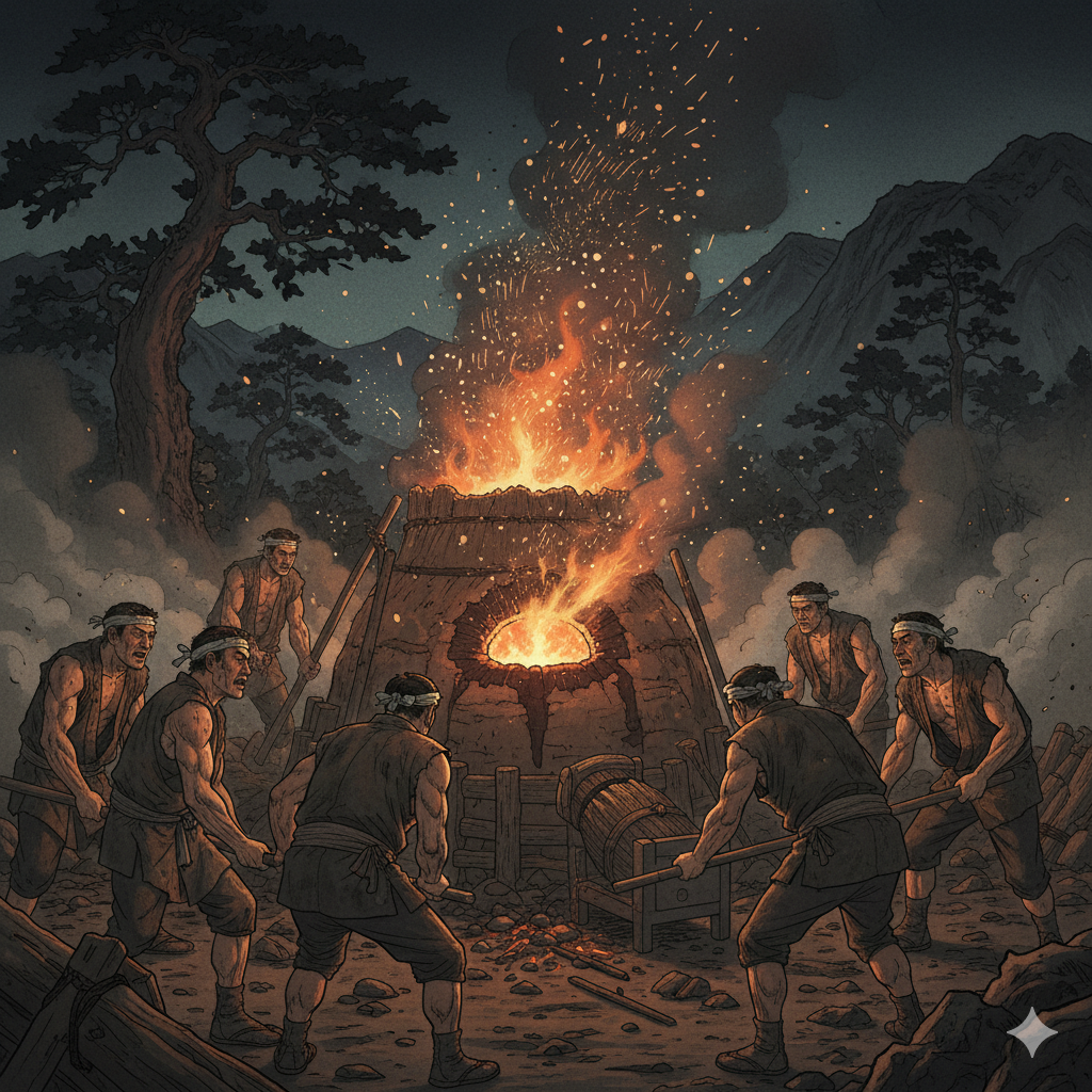 金持神社の物語を理解する上で欠かせないのが、その名の由来となった古代の製鉄法「たたら製鉄」です。