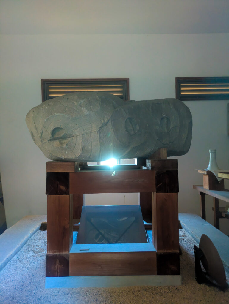 「弧帯文石」とは、吉備特有の幾何学模様が刻まれた、強烈な呪力を持つ遺物です。 行政によって無理やり一つにされた二つの神社ですが、昭和に入り、地元の人々と宗教団体「福田海」の尽力によって、石は再び元の楯築遺跡へと帰還を果たしました。