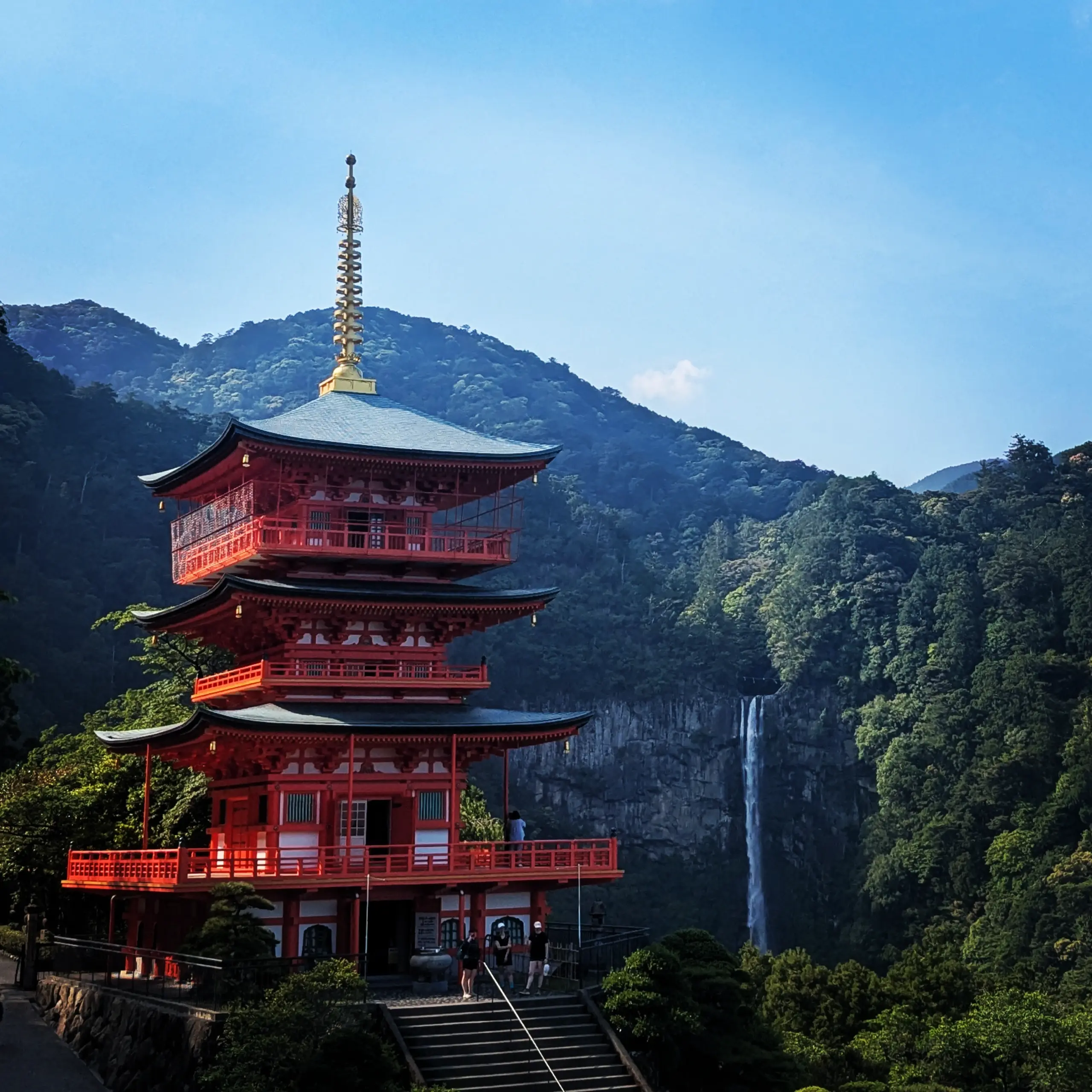 大地を揺るがす轟音でありながら、心を鎮める調べでもある。絶え間なく流れ落ちる水が生み出す霧は肌を潤し、視界に映る133メートルもの荘厳な水の柱は、見る者を圧倒する。ここは熊野那智大社信仰の源泉、那智の大瀧。単なる自然の絶景ではなく、千年以上もの長きにわたり、人々が祈りを捧げてきた信仰そのものの姿である 。