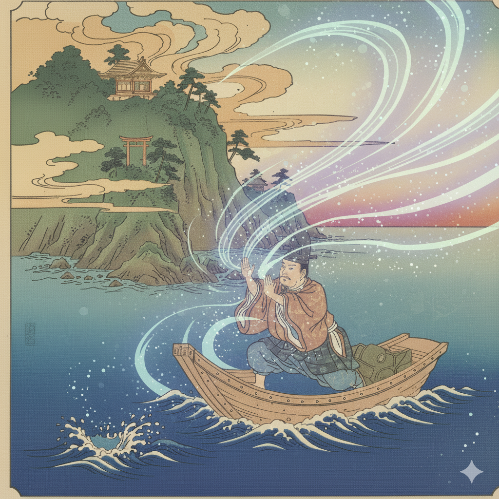 しかし、彼のその後の行動は謎に満ちています。乗っていた船を傾けて踏みつけ、「天の逆手(あまのさかて)」と呼ばれる呪術的な拍手を打つと、青々とした柴で垣根を作り、その中へ姿を隠してしまったのです 。