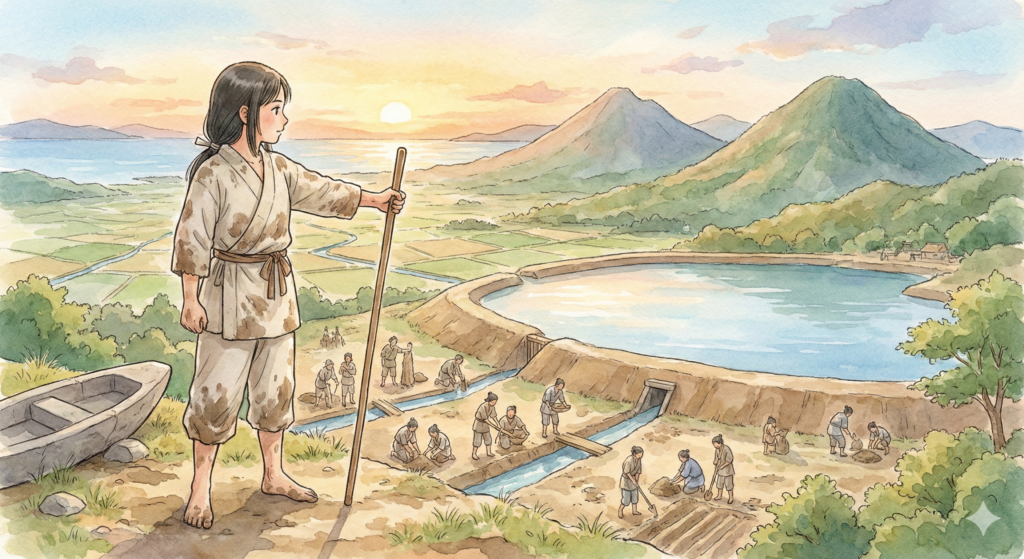 大和での百襲姫が「祭祀・呪術」の専門家として描かれるのに対し、水主神社の伝承に登場する彼女は、驚くほど実務的で、現代風に言えば「土木技術者」や「農業指導者」のような活躍を見せます。