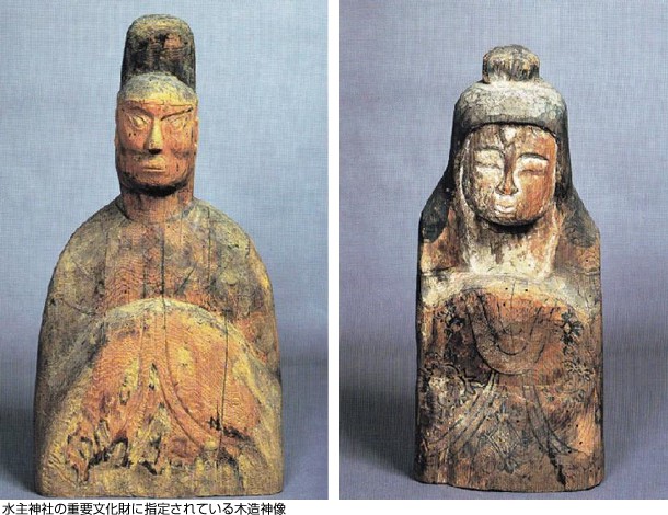水主神社が地方の一神社ではない証拠が、国指定重要文化財の「木造神像群」です。平安時代の作とされるこれらの像には、百襲姫だけでなく、父・孝霊天皇や母・倭国香姫の姿も刻まれています。家族揃って神像が残されているのは極めて珍しく、古代におけるこの神社の地位の高さを物語っています(現在は収蔵庫や博物館に保管されていますが、写真等でその優美な姿を確認できることがあります)。