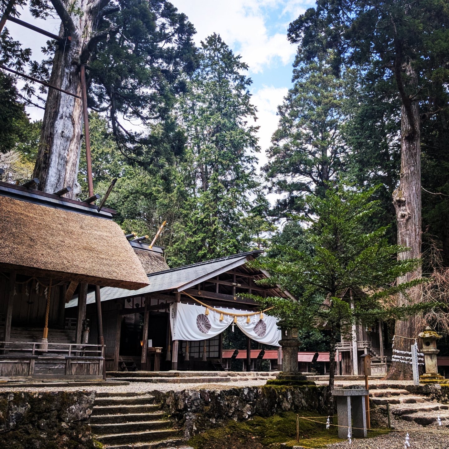 220段の自然石の石段を登りきると 、茅葺屋根の神明造の本殿が静かに姿を現します 。伊勢神宮の「唯一神明造」が他社での完全な模倣を許されていない のに対し、ここの社殿はより古式で素朴な様式を留めています。これは単なる模倣ではなく、伊勢の壮麗な様式が確立される以前の「原型」が、ここに奇跡的に保存されていることを物語っているのです。荘厳な静寂の中、古代の皇室祭祀の原初的な姿に思いを馳せてみてはいかがでしょうか。