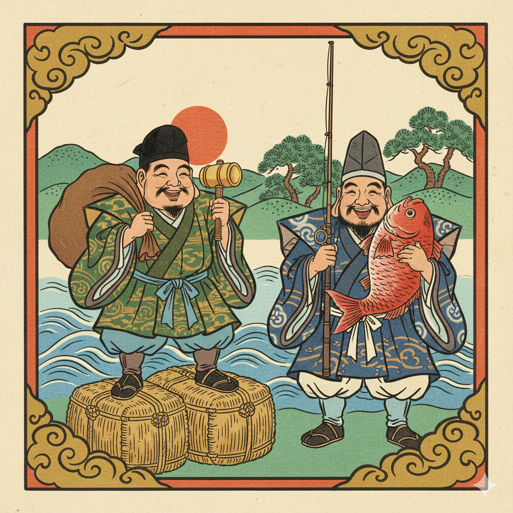 これを現代の用語で解釈すると、だいこく様は「生産・インフラ・開発(Production/Development)」を、えびす様は「販売・流通・商業(Sales/Commerce)」を司っていると言えます。 つまり、この二福神を祀ることは、経済活動の「川上から川下まで」、サプライチェーン全体のご加護を祈願することに他なりません。二宮尊徳が農業インフラ(生産)を整え、現代人が宝くじや商売(流通・富)を願う。時代が変わっても、この「経済循環」を支える神としての本質は揺るがないのです。
