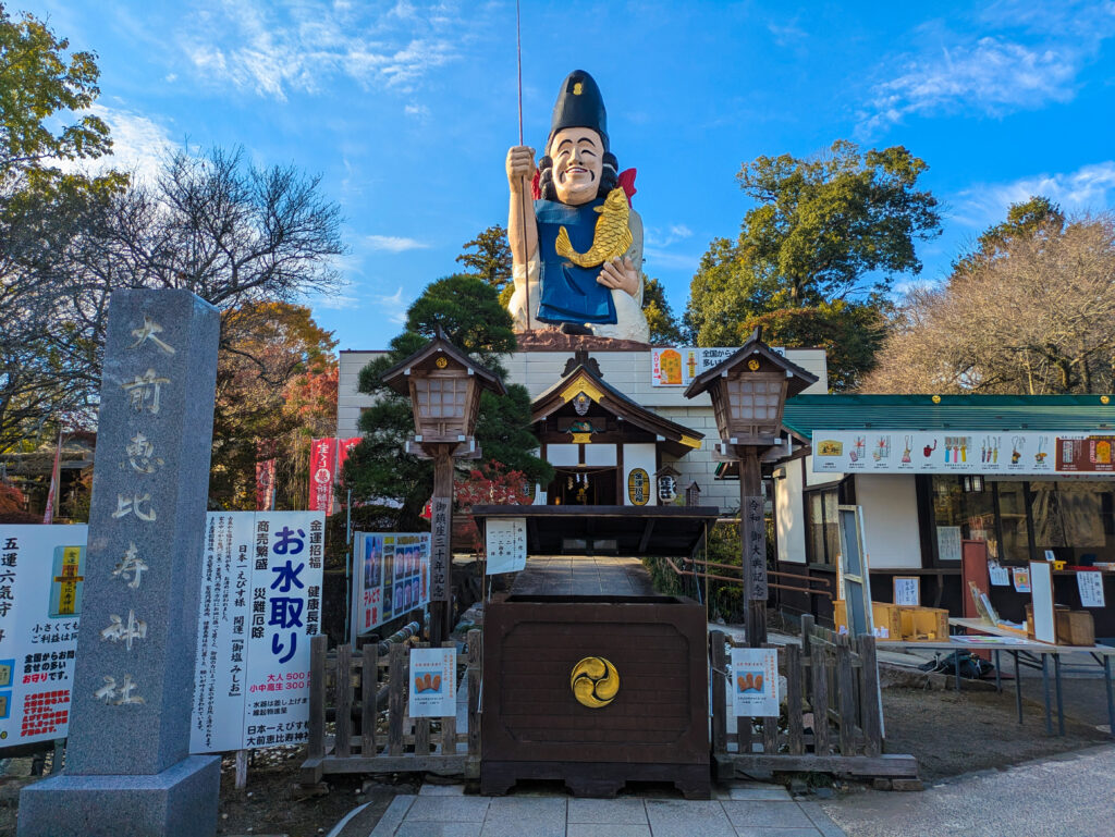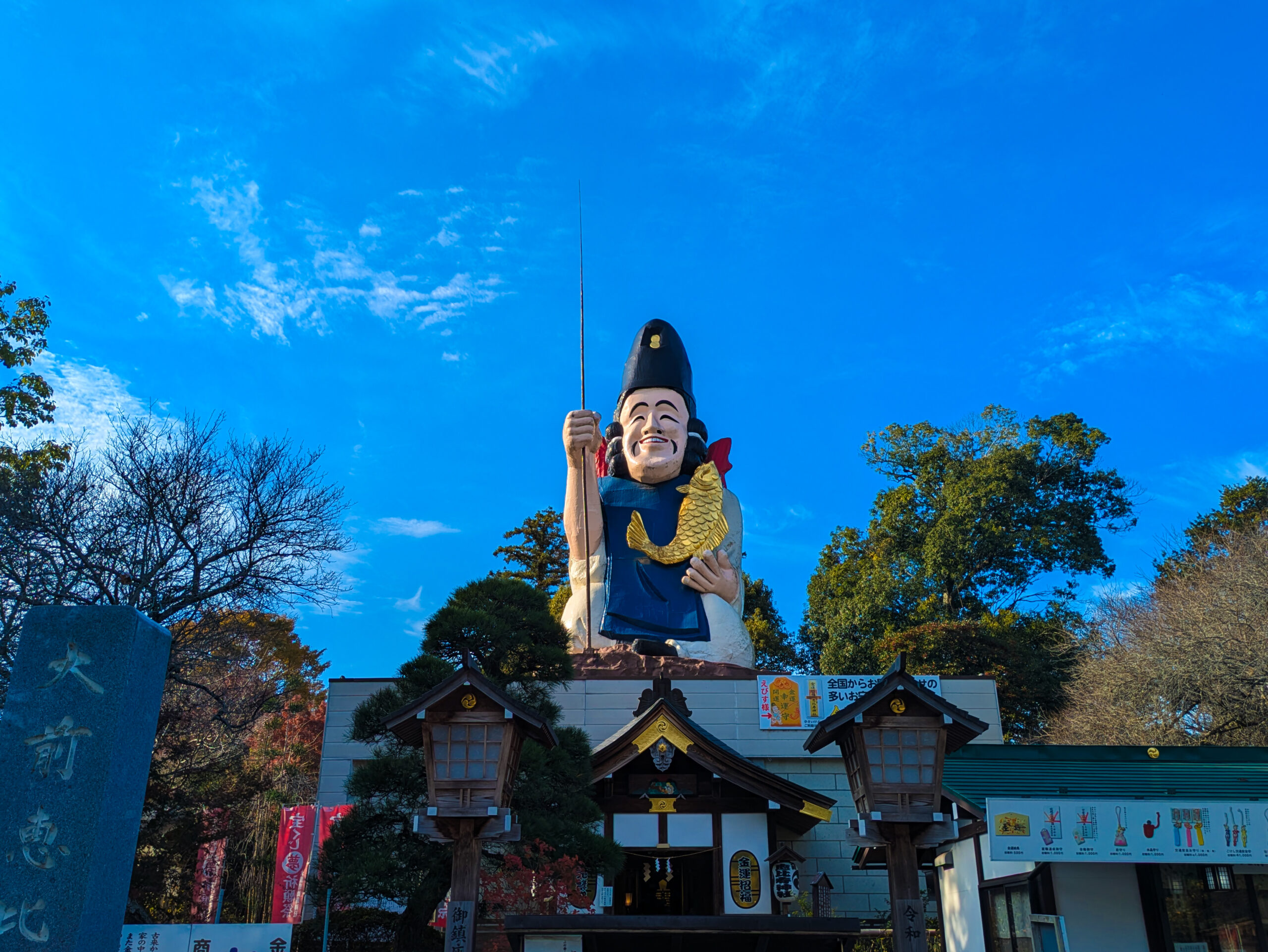 平成元年、この信仰を可視化するかのように境内に建立されたのが、高さ20メートルを誇る「日本一えびす様」です。 黄金の鯉を抱いたその姿は圧巻ですが、驚くべきはその「実績」です。「参拝したら高額当選した」「販売店から億が出た」という口コミが広がり、今や北関東随一の宝くじ当選祈願所として知られています。