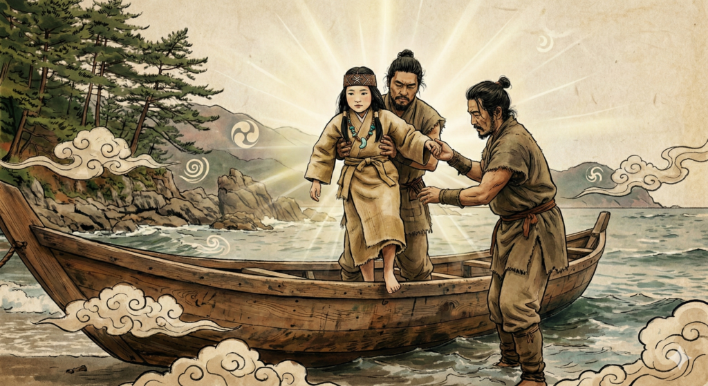 • 艪懸明神: 若き女神が希望を持って上陸した「生と開発」の場所。