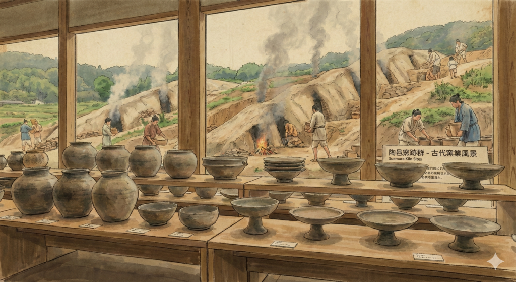 神社がある泉北丘陵一帯は、良い粘土と燃料となる木々(太田の森)に恵まれ、約600年もの間、須恵器生産の中心地として栄えました。その規模は「陶邑窯跡群(すえむらかまあとぐん)」と呼ばれ、確認されているだけで1000基以上、推定では数千基もの窯が稼働していたと言われています。