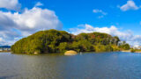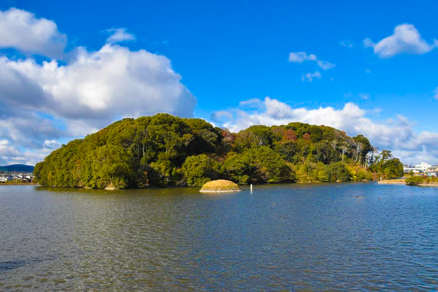現在、島への立ち入りはできませんが、拝所の近くからその姿を望むことができます。 巨大な王の墓の足元で、永遠に主君を守り続けるかのような小さな島。その光景は、記紀神話の中でも屈指の美しい情景と言えるでしょう。
