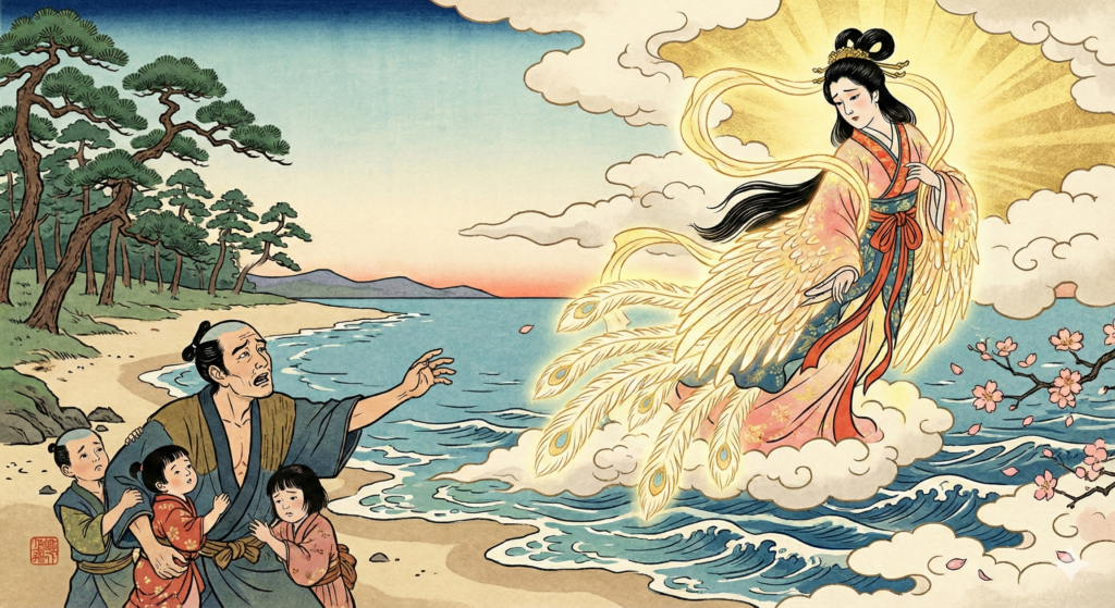 - 結末: 天女は三人の娘を産みます。その後、隠されていた羽衣を見つけて天へ帰ります(あるいは七夕の日だけ会えるようになります)。