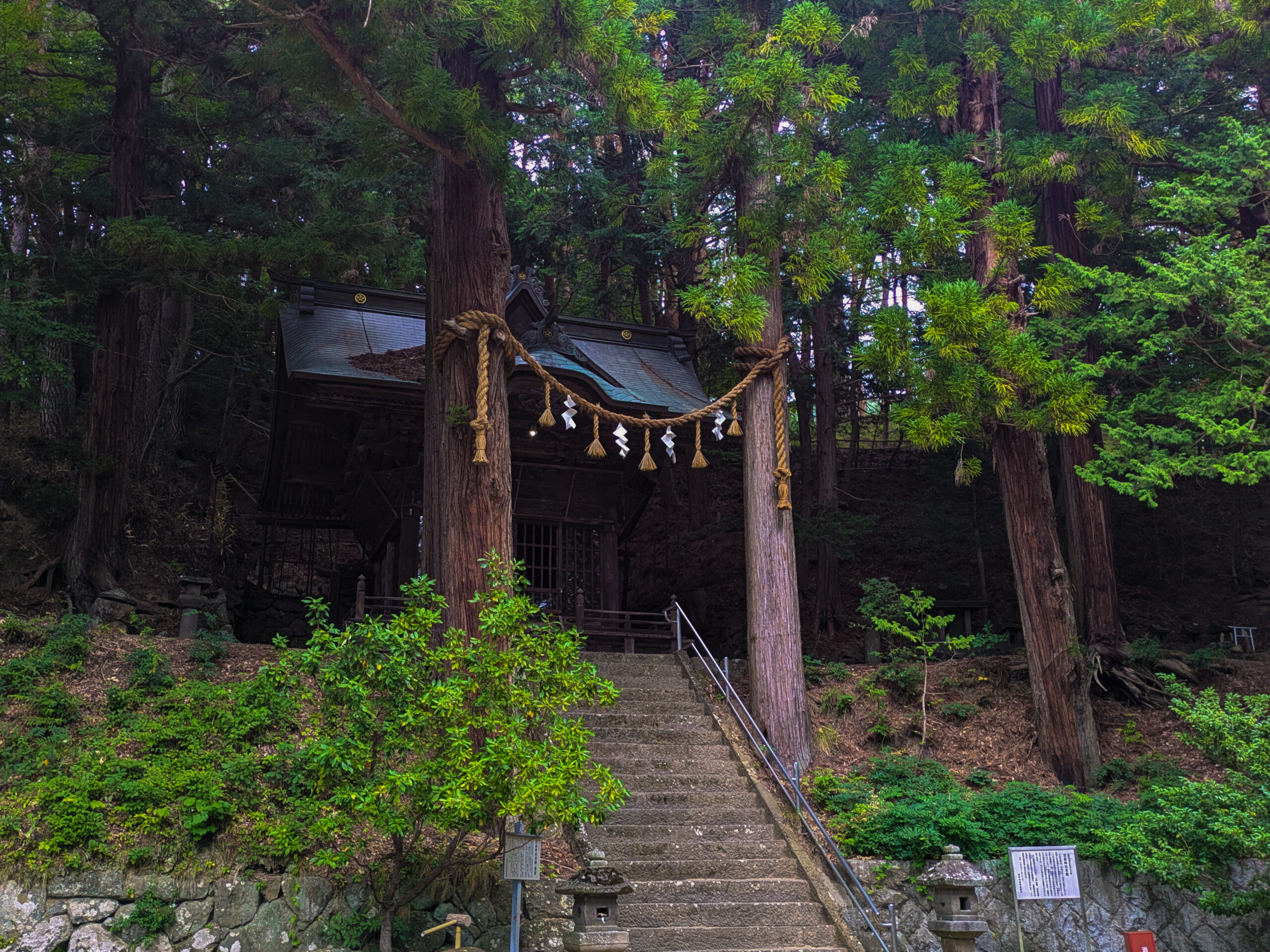 静かな山腹に鎮座し、神秘的な雰囲気が漂う神社です。