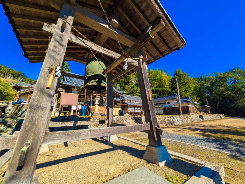 境内にはもう一つ、不思議なものがあります。お寺にあるはずの「梵鐘(つり鐘)」です。