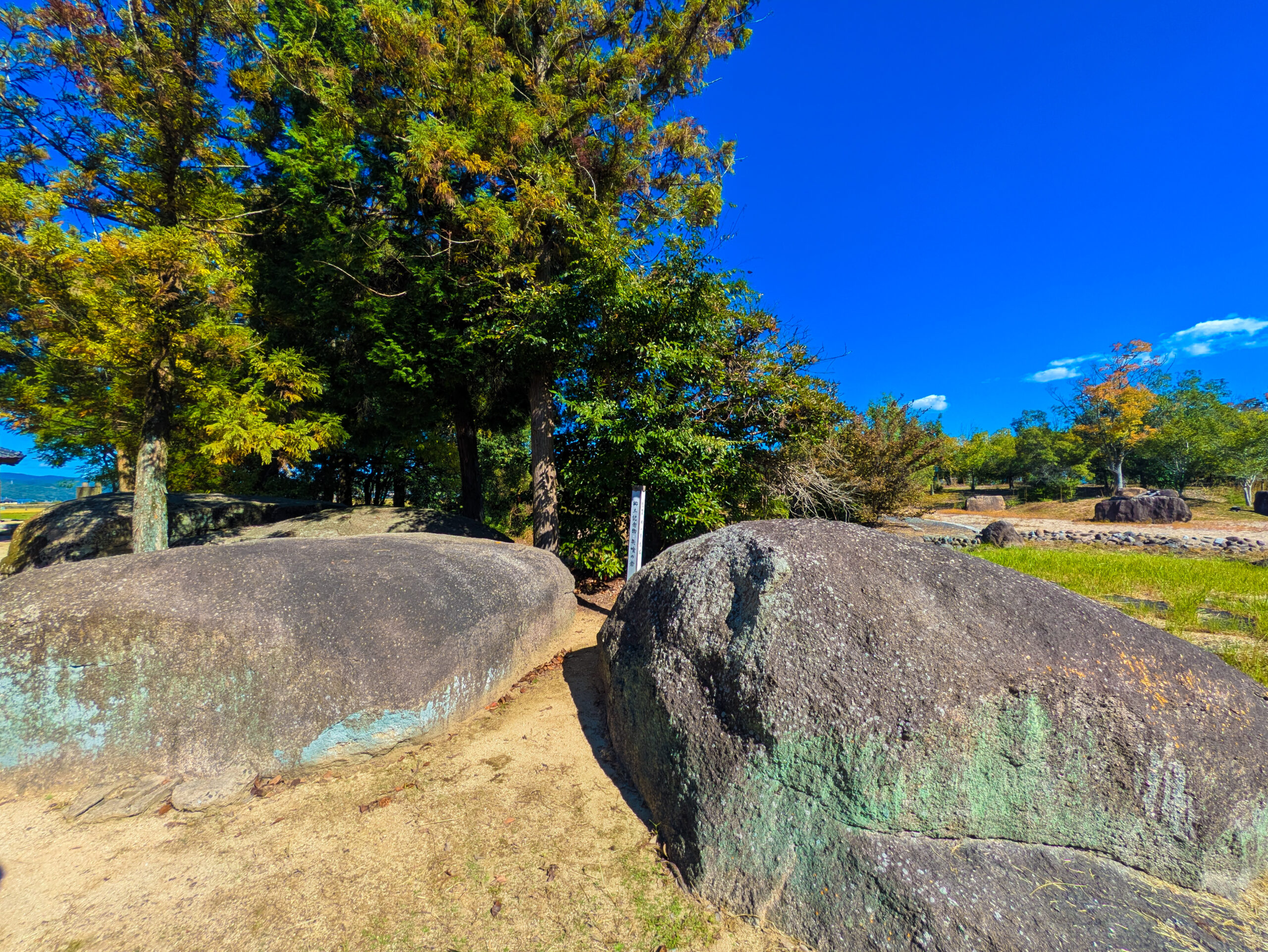 実際に境内を訪れると、そこには花崗岩の巨石が5つ、積み重なるように鎮座しています。これこそが、温羅が投げたとされる岩です。 地質学的にも、鬼ノ城周辺は花崗岩質の山。この巨石が「山側から飛来した(運ばれた)」という伝承は、地質学的な整合性も取れているのです。