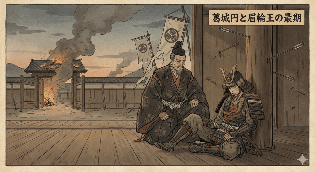 前述した眉輪王が逃げ込んだ先が、当時の大臣的な立場にあった豪族・葛城円の屋敷でした。 雄略天皇は軍勢を率いて葛城氏の邸宅を包囲し、火を放ちます。追い詰められた葛城円は、娘と眉輪王を自らの手で殺めた後、燃え盛る屋敷の中で自害しました。